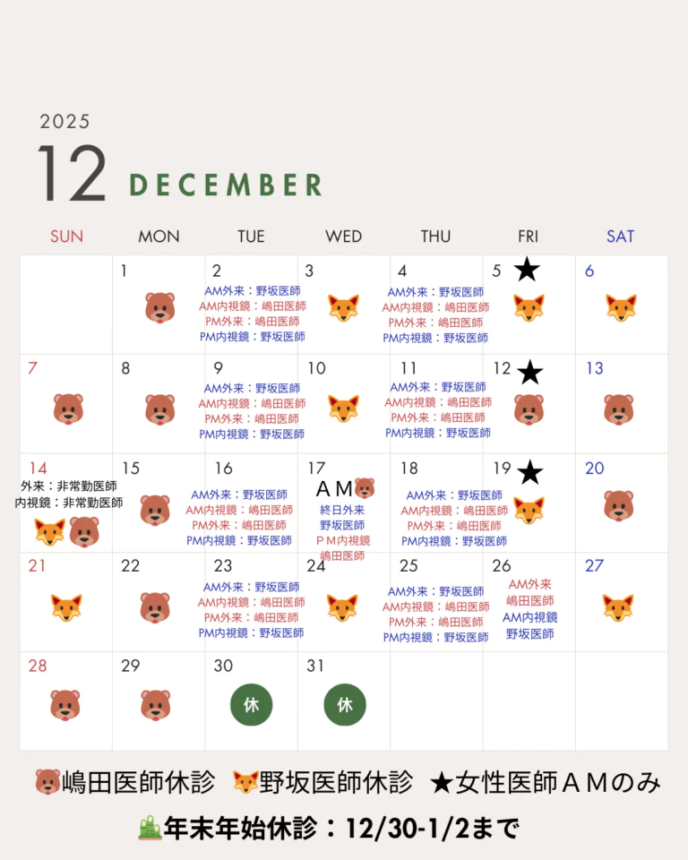 2025年12月診療カレンダーと年末年始休診のお知らせ