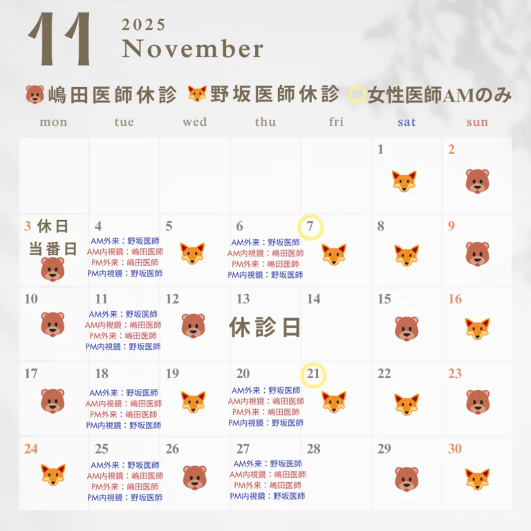 いつも多摩せいせき消化器内視鏡クリニックにご来院いただき誠にありがとうございます。